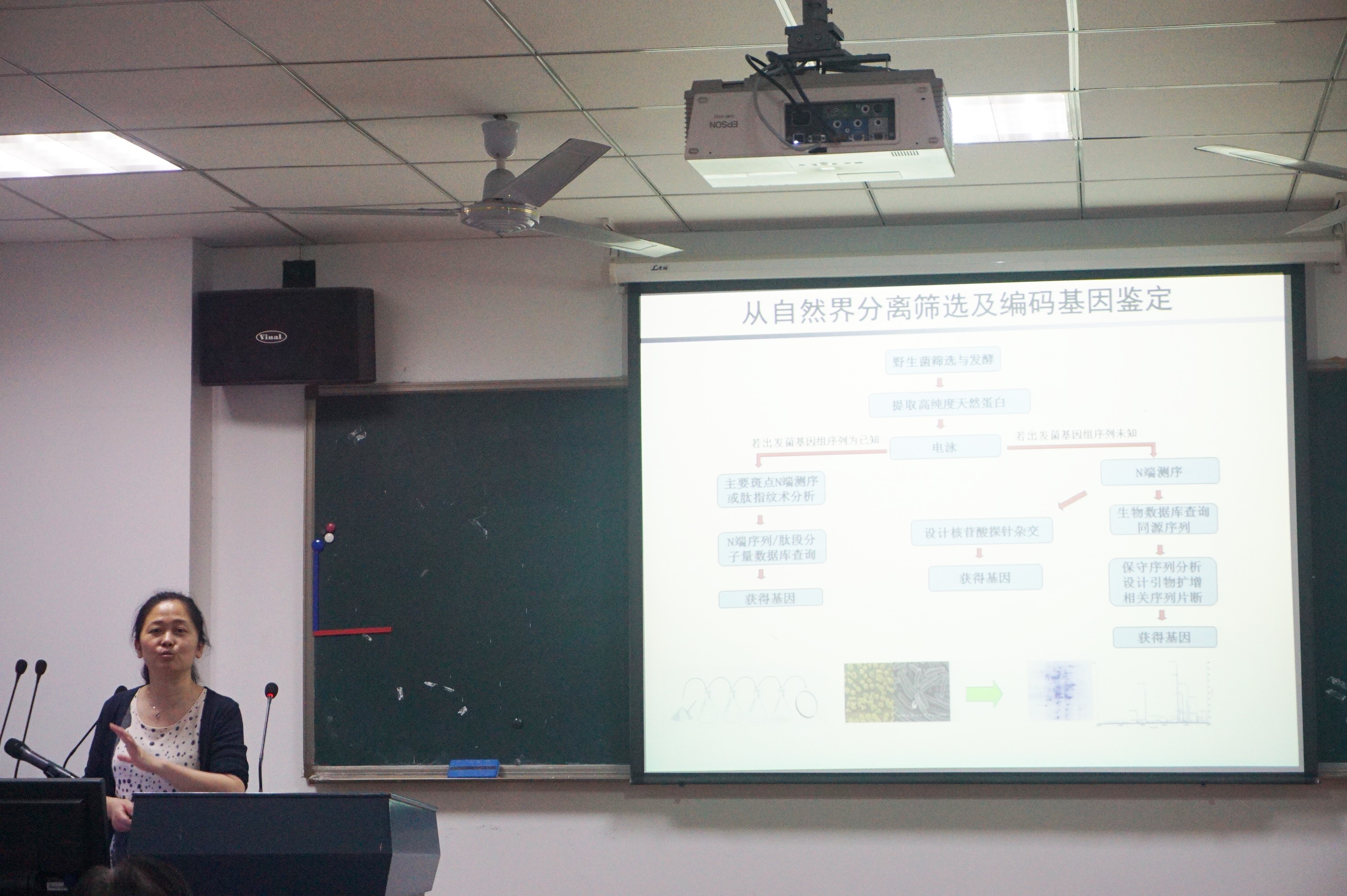 吴敬教授介绍了关于理想生物催化剂和功能基因组和蛋白质组学筛选的相关知识,然后以角质酶的基因挖掘、功能优化以及分泌表达为例,具体讲解了如何从自然界中分离筛选及编码基因鉴定,酶制剂功能改造和酶制剂编码基因挖掘相关技术。