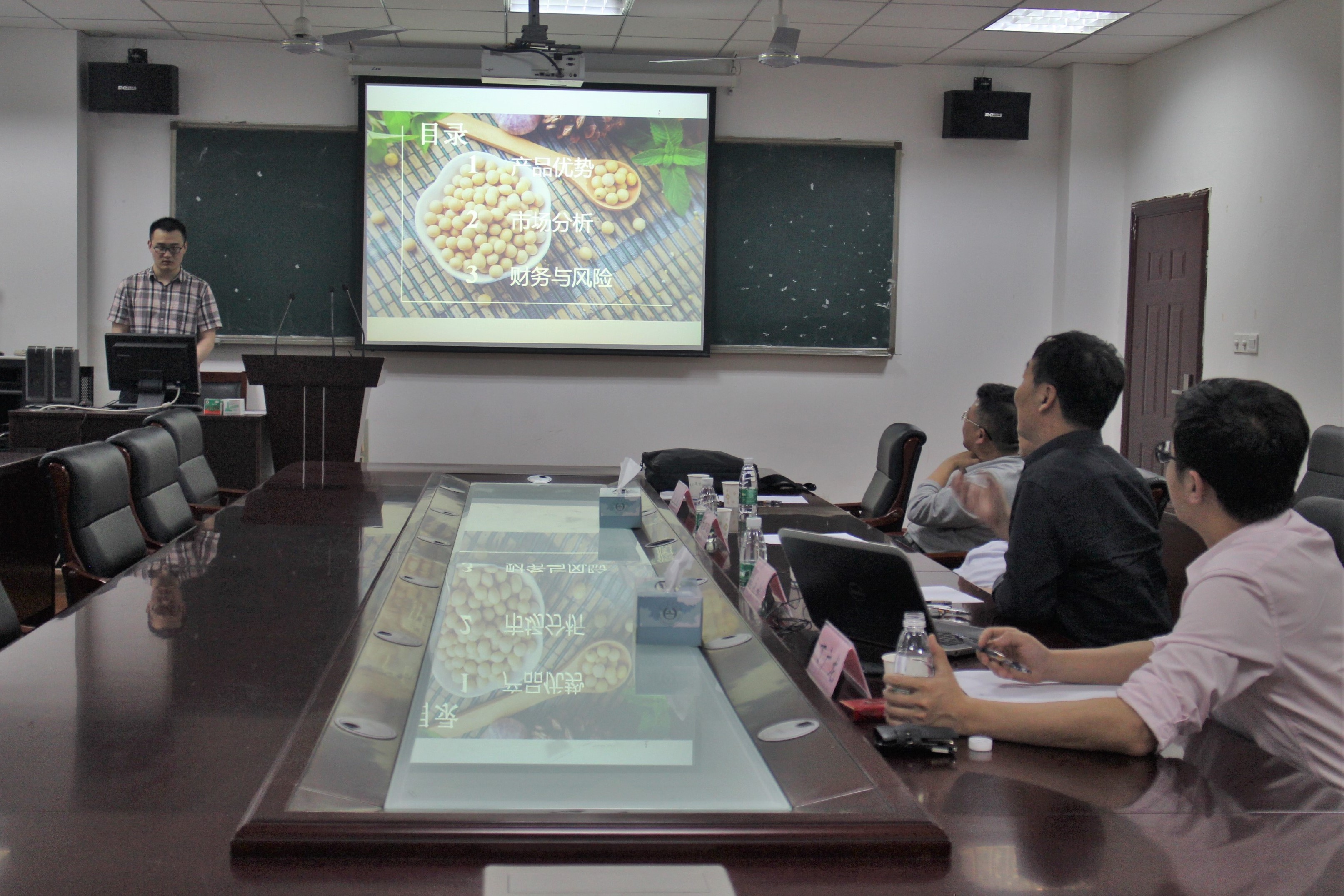 首先,“膜豆奇缘”团队通过ppt展示的方式从产品优势、市场分析、财务与风险三方面进行展示,后评委针对展示过程中存在的问题进行指导。评委们就展示效果、产品用途、市场前景等方面提出一些建议,提出展示时应突出重点、逻辑清晰,其次在对比时应指出参照物并用数据“说话”。团队成员接受评委意见,并对参赛作品做进一步完善。