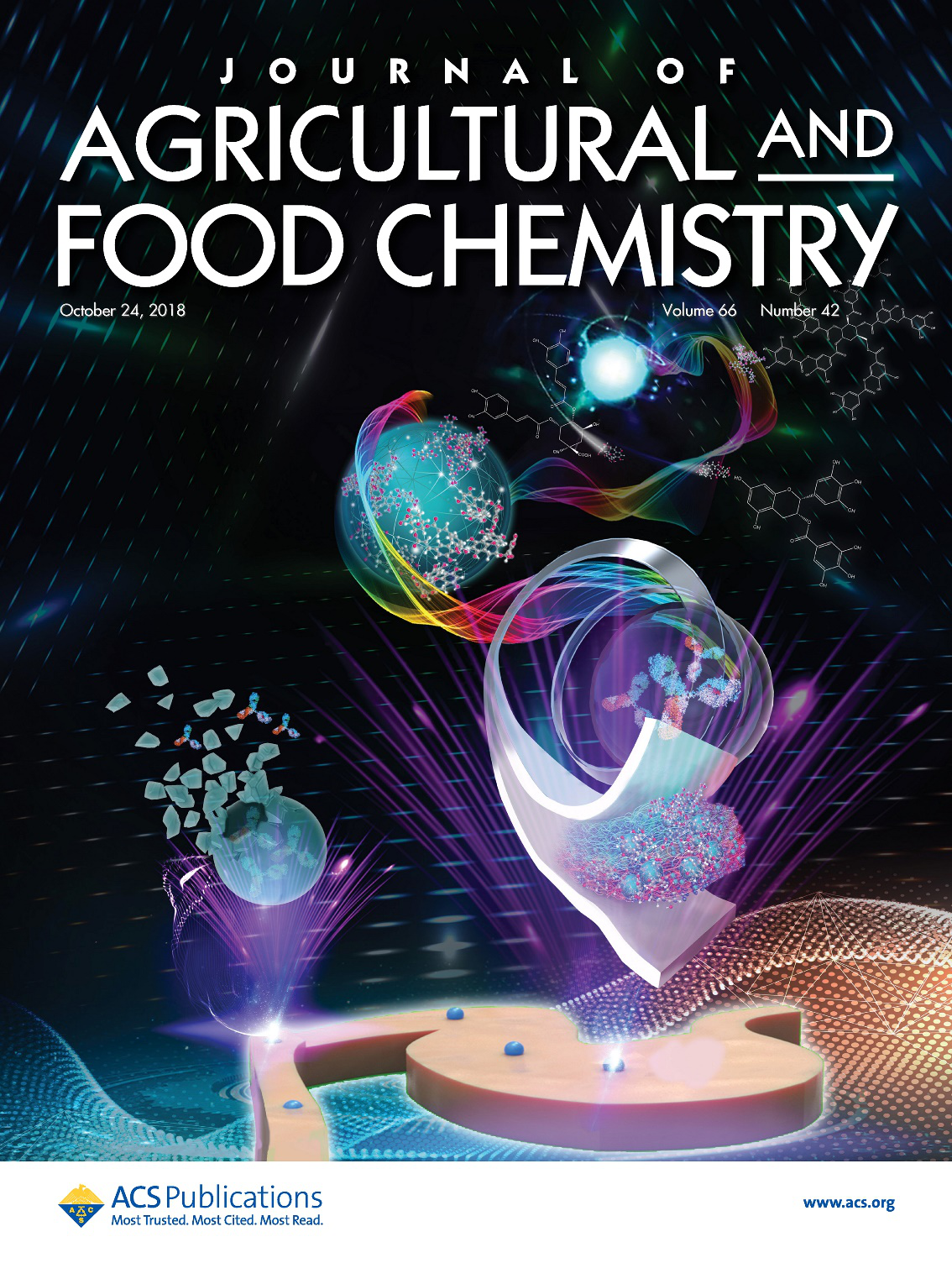 食品与纳米生物技术实验室曾晓雄教授团队在美国化学学会期刊《Journal of Agricultural and Food Chemistry》最新一期(2018,Volume 66, Issue 42)发表封面论文《Characterization of Bovine Serum Albumin and (-)-Epigallocatechin Gallate/3,4-O-Dicaffeoylquinic Acid/Tannic Acid Layer-by-layer Assembled Microcapsule for Protecting Immunoglobulin G in Stomach Digestion and Releasing in Small Intestinal Tract》。第一作者为陈春旭博士,通讯作者为曾晓雄教授,南京农业大学为第一署名单位。原文发表网址//pubs.acs.org/doi/10.1021/acs.jafc.8b04381。该文是曾晓雄教授团队在Journal of Agricultural and Food Chemistry上发表的第23篇论文。