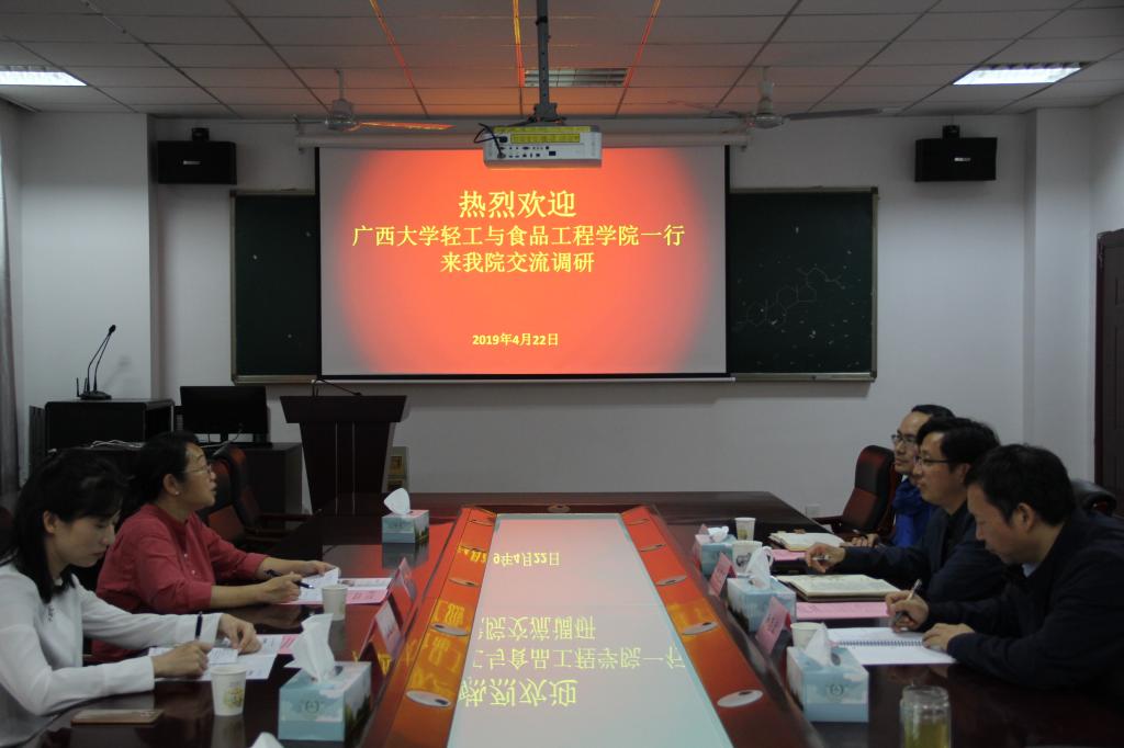 4月22日,广西大学轻工与食品工程学院副院长林莹一行来我院调研。院长徐幸莲会见了林莹一行,院党委书记朱筱玉与林莹一行展开了座谈。学院副院长辛志宏参加座谈。