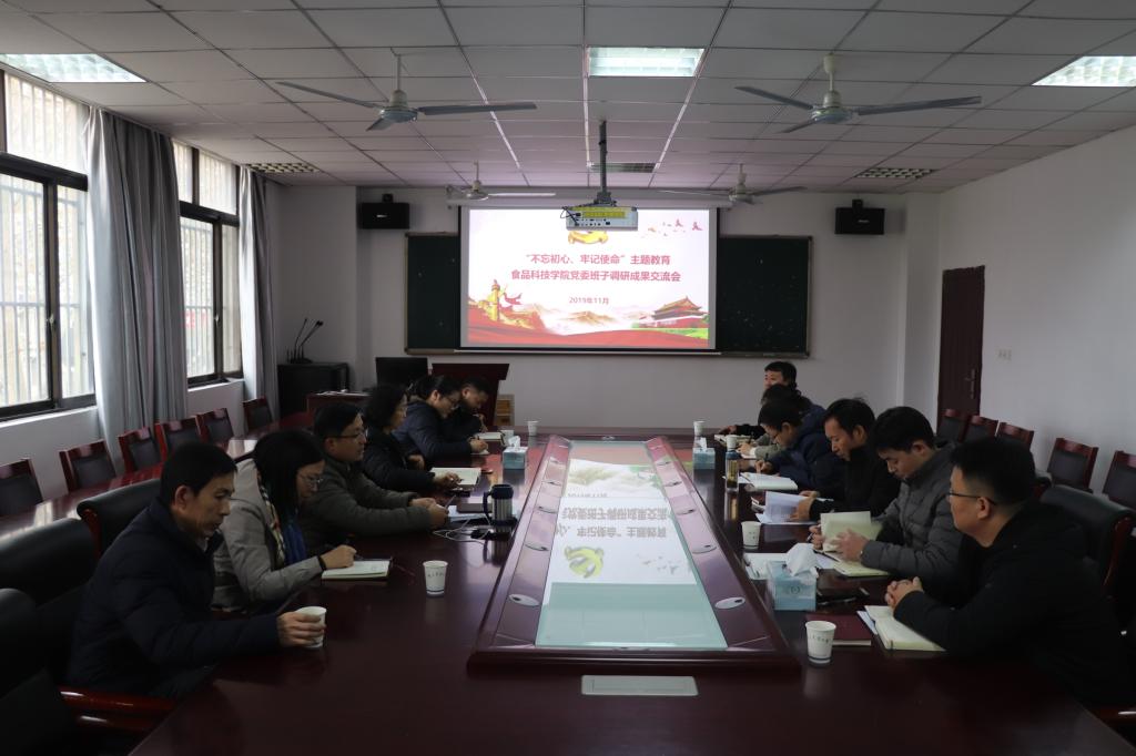 “不忘初心、牢记使命”主题教育党委行政领导班子调研成果交流会在食品院220会议室举行。学院领导班子全体成员,学院教师党支部书记、系主任出席交流会。会议由院党委书记朱筱玉主持。