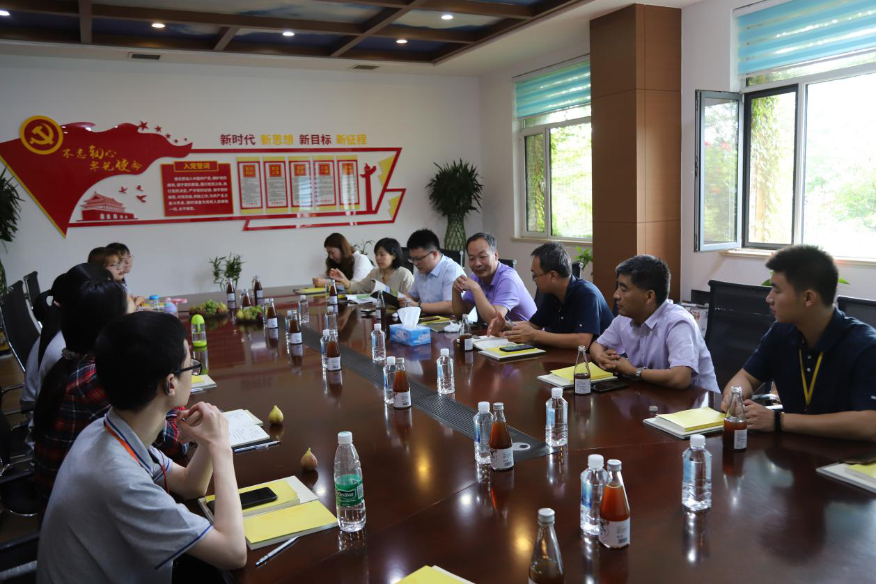 随后,在座谈环节,考察团一行与博兴红马饲料科技有限公司董事长兼总经理董寿周、发酵饲料生产技术部经理曹清杰、生态畜禽养殖部经理周鹏等进行了充分交流。董寿周表示,目前企业在猪肉深加工和猪肉精细分割、食品包装技术创新和发酵饲料研发等方面仍然存在一定的技术瓶颈,希望通过良性的校企合作互动模式,充分实现在技术创新、人才培养和成果转化等方面的双赢。学院考察团表示,学院相关研发团队将依托自身科研优势,紧密结合企业的实际需求和困难,积极为企业提供相应的技术方案,从而促进校企之间的密切合作与交流。