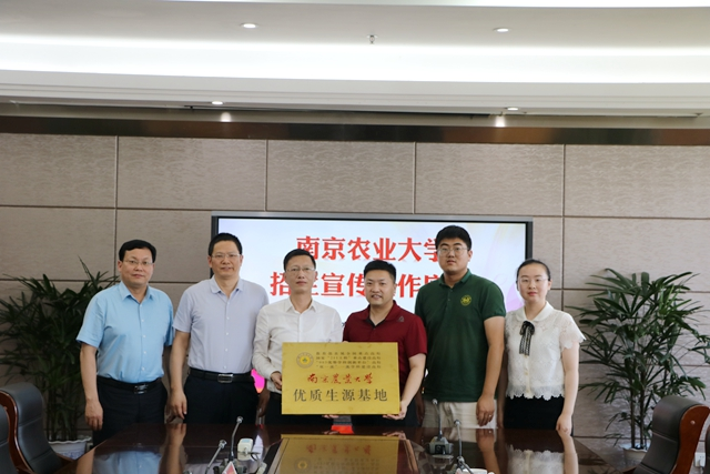 在扬中高级中学,镇江招生小组受到了学校党委书记、校长王成杰,副校长陈世明、李强等的欢迎。王成杰对南京农业大学一行来访表示热烈欢迎,并介绍了江苏省扬中高级中学的办学历史、学校规模及毕业生升学去向等情况,希望今后可以与南京农业大学加强合作交流。双方举行了优质生源基地签约授牌仪式。