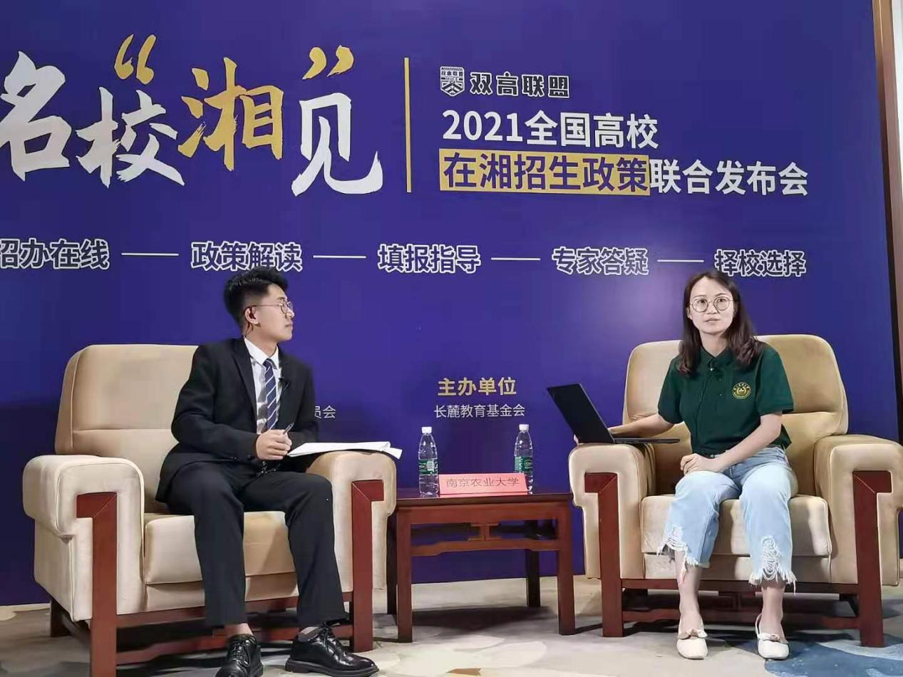 活动中,李丹丹参加了“名校‘湘’见——2021全国高校在湘招生政策联合发布会”高校访谈直播活动,面向湖南省高中学子、家长,就学校的概况、办学历史、专业特色、在湘招生计划、毕业生就业情况等问题做了介绍和解答,访谈现场在线上同步直播,获得较高关注,扩大了我校在湖南省的知名度和影响力。