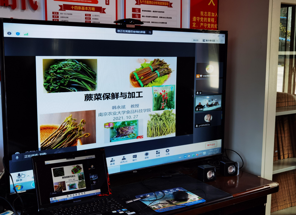 培训会上,我院与兰山村党支部在视频中进行了乡村振兴下一步工作交流。党委书记孙健表示,在接下来的帮扶中,一是尽最大的努力把蕨菜加工、食用菌林下栽培等科学发展技术相关培训开展到线下村组中,让科学技术在兰山壮产、富民;二是结合新时代新农村建设,引领兰山村“两委”考察观摩先进新时代新农村建设点,为兰山村在下步的新农村建设做好充足的准备。兰山村支部书记陈启华代表全体参会人员在会上发言,鸣谢南农技术的支持和引导,各位领导的关心和帮助,兰山村可谓“初冬温降、南农送炭、遇寒有暖”。为兰山村在乡村振兴实施步伐上夯实了基础,兰山村振兴新局面、新篇章又踏上一步新台阶。