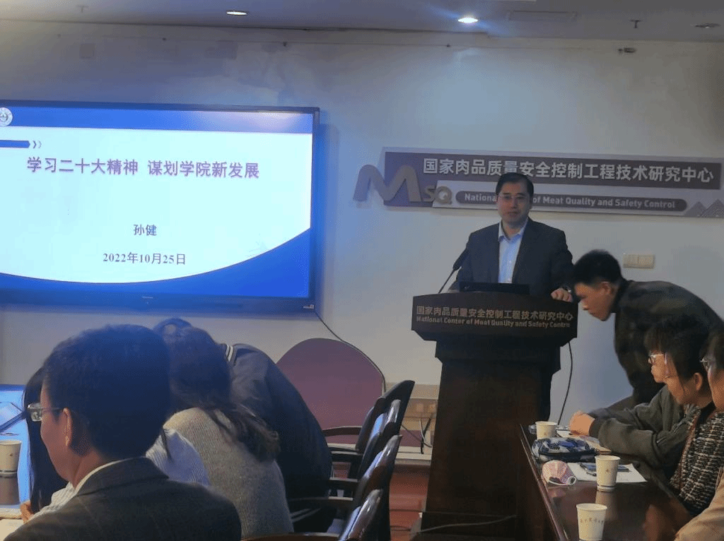 党委书记孙健结合党的二十大报告精神学习,于10月26日——27日,在肉品中心会议室及学院220会议室分别给学院四个教师党支部党员做“学习党的党的二十大报告,谋划学院新发展”的微党课。