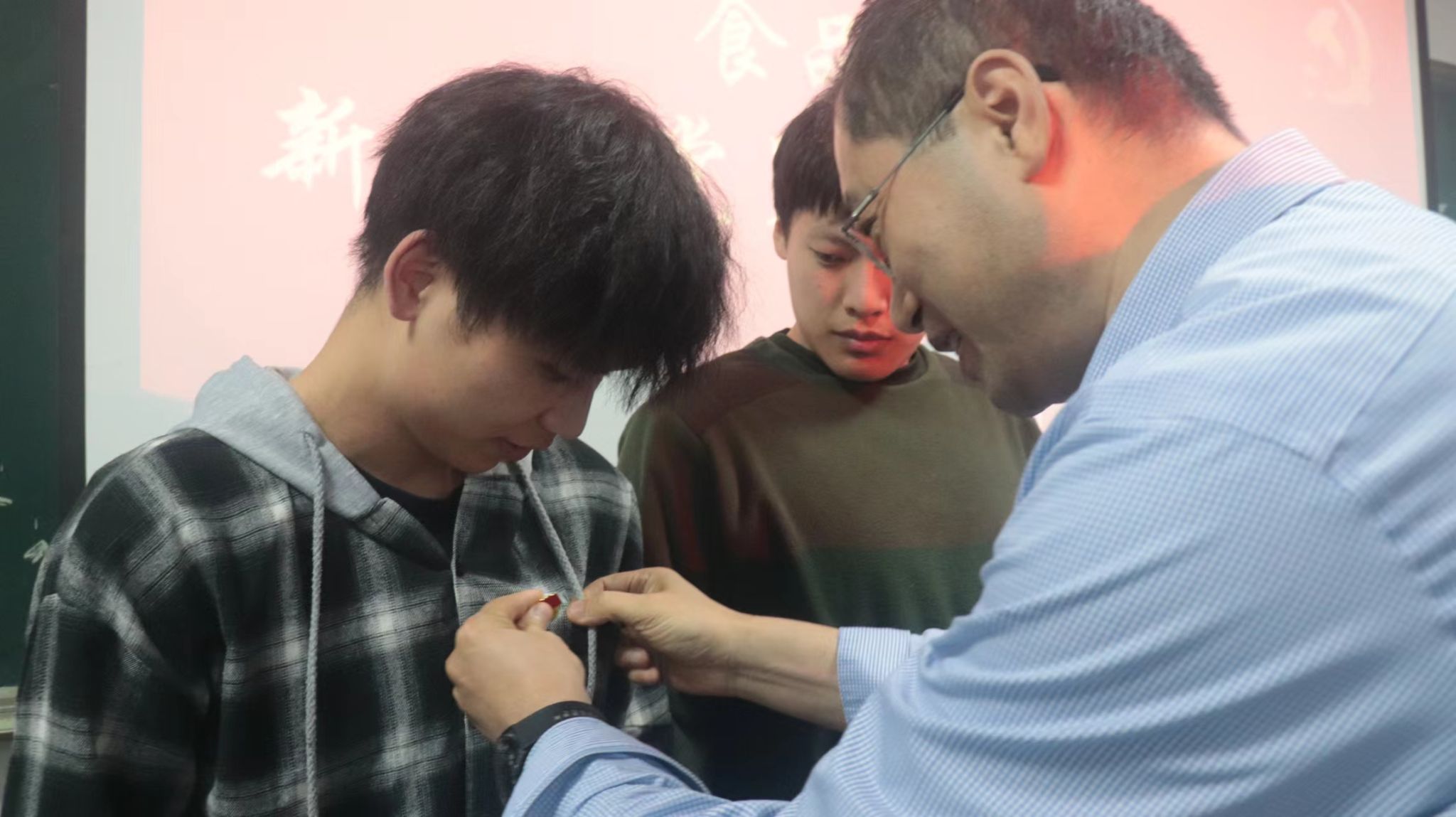 孙健代表学院党委对新发展党员表示热烈祝贺,并对新发展党员提出四点希望:一是强化政治理论学习,坚定政治立场。要把理论学习作为终身课题,不断提升自身理论修养,关注国家和时代发展形势,了解新中国发展取得的各项成绩来之不易。增强“四个意识”、坚定“四个自信”、做到“两个维护”;二是对党绝对忠诚,牢记责任使命。要明确党员的初心使命,深入开展党纪学习教育,严守党的政治纪律和政治规矩。三是发挥党员的先锋模范作用,做好表率。时刻严格要求、鞭策、激励自己,做好表率、亮出旗帜,传承党的光荣传统和优良作风;四是立大志、明大德、成大才、担大任。坚持为国奉献、为民服务。 坚持为公不为私,为助推食品产业高质量发展贡献青春力量。