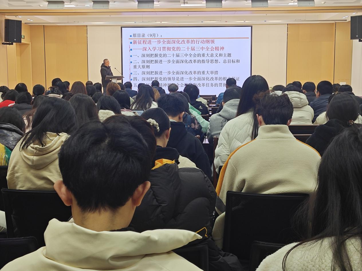 报告厅举行。本次宣讲会特别邀请了“马克思主义学院师生宣讲团”的吴国清教授进行授课,深入解读全会精神,助力师生深刻领会其核心要义。会议由学院党委书记孙健主持,学院师生党员代表一百余人参加会议。